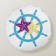 Ship wheel helm and starfish round pillow