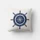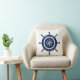 Nautical badge ship wheel and nautical star. Beautiful blue and white pillow for every nautical living room, bedroom, entry way - for every nautical home. For all sailors and everyone who loves nautical, Hamptons, Nantucket and New England Style.
