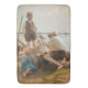 This design features a painting by the Finnish-Swedish artist Albert Edelfelt (1854–1905). It depicts a father building a wooden toy ship with his young sons watching on. The ship has been carefully constructed, with sails, rigging and even a flag flying from the mast. The boys and their dad are sitting on rocks on the coast near the sea, as they build their toy ship. There are some real sailing ships and a steamboat on the water in the distance. The original artwork was painted by Albert Edelfelt in 1886.