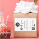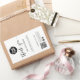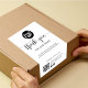 Customise these white minimalist "Shipping Logo QR Code Package White Box Seal Labels" for business packaging, featuring a black business logo, the message "Thank you for your order" in a beautiful script, your custom message, QR Code, and social media handles (Instagram, Facebook). Stickers are intended to go vertically over the lid of the packaging box. Please get in touch with the store designer for further customisation if needed.