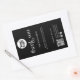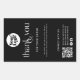 Customise these black minimalist "Shipping Logo QR Code Thanks Black Box Seal Labels" for business packaging, featuring a white company logo, the message "Thank you for your order" in a modern ligature typography, your custom message, QR Code, and social media handles (Instagram, Facebook). Stickers are intended to go vertically over the lid of the packaging box. Please get in touch with the store designer for further customisation if needed.