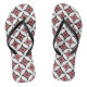 Traditional Japanese Shippo, or "seven treasures" patterned flip flops of interlocking circles with a central flower motif - coral pink flowers with a black and white patterned background