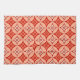 Traditional Japanese Shippo, or "seven treasures" patterned tea towel of interlocking circles with a central flower motif - flowers in cream and tangerine orange with a deep mandarin and pastel orange patterned background