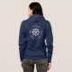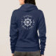 A Ships Wheel Helm & Stars with Personalised Captain or other Title and Your Boat Name or other custom text in White on a Navy Blue Zip-up Hoodie. Makes a great gift and conversation piece for any occasion.