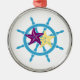 Blue shipwheel with a yellow and purple starfish for a cute nautical vibe.