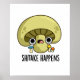 Shitake Happens Funny Mushroom Pun features a cute big mushroom reminding you that lousy stuff happens sometimes. Perfect pun gift for family and friends who love cute mushroom puns.