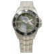 Has heft and feel of expensive stainless steel quartz watches. Good band with safety catch. I removed links, which is easy because engraved arrows show direction to push the linking pins. As always by this seller, the image (a railroad logo) is a perfect reproduction of my emailed image, and is precisely spaced and aligned.