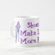 A fun girly slogan coffee mug for women who love shoes. Purple and lavender version.