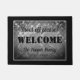 Shoes of please steel plate sign family welcome doormat. Custom door mat for friends, families, neighbours, business, company, shop, store, office, newlyweds, mr and mrs couple etc. Add your own fun welcome sign message, address, house number, family name, established year date, monogram, surname or humourous quote. Cute gift idea for new home or housewarming. Stylish typography template with grey construction work metal plate background texture image. Personalizable doormat sign with border. Create your own funny entry mat / rug for front door, entryway or hall. Customisable home decor / decorations for your house. Novelty home decor gift ideas. Available in small and big / large size.