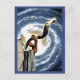 New Year art. Person in tallit blowing shofar against a backdrop of a swirling galaxy.