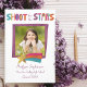 Celebrate your graduate with this photo graduation announcement. It features the slogan SHOOT FOR THE STARS in colourful painted style lettering and a coordinating shooting star graphic. This announcement is ready to be personalised with your own photo, the graduate's name, their school name and their class of year.