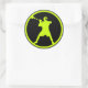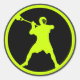 Locked, cocked and ready to rock. Silhouette of lacrosse player in the midst of firing a shot on goal. Circular emblem design in black and neon green.