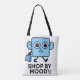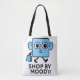 Carry positivity everywhere! This stylish tote bag features Smilo, the cheerful blue character , with the phrase Shop By Mood.