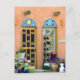 Colourful shop on the corner in southwest Colorado. Stucco building with mexican tiles, blue, flower pots and plants.