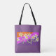 purple tote bag with shop till you drop heading and colorful modern daisy design. perfect for carrying stuff