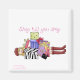 An overwhelmed shopper with many packages .. a cute magnet for that "professional" shopper in your life.