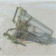 A digitally enhanced photograph of a discarded shopping trolley in mud printed on a sticker.