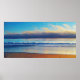 Horizontal linear shoreline with clouds, waves and sand. This Photo Painting has an appearance which is somewhere between a photograph and a watercolor painting.