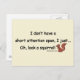 "I don't have a short attention span, I just... Oh, look a Squirrel!" Funny saying / quote about often being distracted and/or forgetful. Black text / letters with a light beige / brown background that you can change to any colours.