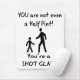 This custom mouse pad features a humourous text design that is a great gag gift idea for tall people that like to tease their short friends (like my tall friend). The text reads 'YOU are not even a Half Pint! You're a SHOT GLASS!'. I hope this makes your short friends laugh. I did. There are also silhouettes of a short and tall person. The background colour can easily be customised.