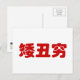 Short, Ugly & Poor 矮丑穷 Chinese Hanzi MEME Postcard