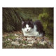 Black and white shorthair cat sitting between the trees