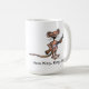 This is a mug with a cartoon image of a mouse holding a shotgun. Caption reads, "Here kitty, kitty, kitty!"