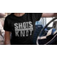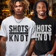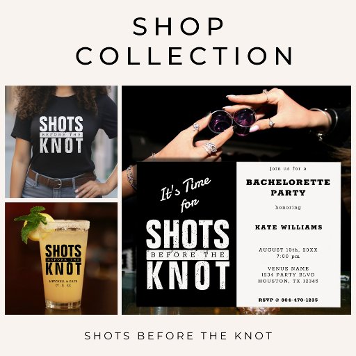 Black and white grunge bachelorette party "shots before the knot" shirt. Personalise the colours. Grab one for the whole bridal party and the bride.