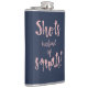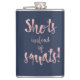 Custom flask with script font quote "shots instead of squats" can be a great funny gift for a bachelorette party