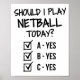 Should I play netball today? For the person who loves playing or coaching camogie. Funny gift for Christmas, Birthdays, Mother’s Day, or for yourself.