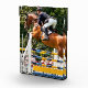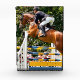 A photographic design of a horse and rider in a show jumping competition.