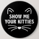 Colossal, 6 Inch Round Black Button With Show Me Your Kitties Graphic