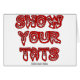 Show Your Tats is created with tribal tattoo style lettering and a blood red colour.