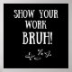 Encourage students to demonstrate their problem-solving process with this humourous "Show Your Work Bruh!" classroom poster. Featuring playful math symbols and a bold, eye-catching design, this poster is perfect for teachers who want to promote the importance of showing work and critical thinking in a fun and engaging way. Ideal for creating a positive, educational, and motivational environment in any classroom or school.