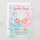 Celebrate your special moment with this adorable gender reveal invitation! Featuring two sweet teddy bears floating on pink and blue clouds with balloons and confetti, this design sets a charming and joyful tone for your big reveal. With soft pastel colours and a dreamy background, it's perfect for sharing the excitement of "Boy or Girl?" with loved ones. Fully customisable with your event details.