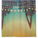 Shower Curtain Beach Sunset Palm Tree String Light
