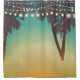 Shower Curtain Beach Sunset Palm Tree String Light