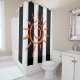 Shower Curtain Black and White Stripe Orange Star
