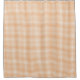 Shower curtain with a beige and white gingham pattern. Displayed straight and hung on a rod in a modern bathroom with light-colored walls and fixtures.
