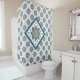 This colourful shower curtain has multi-colour medallionson white. Then the kicker is the bold medallion in the middle! The Medallions images come from an actual handmade tile by Oregon tile maker Fay Jones Day. Style: Shower Curtain