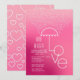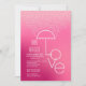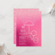 A pink invitation with a shower of hearts and the word "Love" made into an extension of an umbrella. Perfect for baby showers and bridal showers.