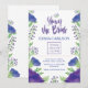 A watercolor, floral, shower invitation in hues of blue and purple. (<a href='https://www.freepik.com/free-vector/floral-bridal-shower-invitation-template-in-watercolor-style_1091264.htm'>Designed by Freepik</a>). <br/><br/>The card is easy to customise with your wording, font, font colour and choice of six paper types.<br/><br/>Not exactly what you're looking for? All our products can be custom designed to meet your needs at no extra charge.<br/><br/>Simply contact us at askcottonlamb@gmail.com<br/><br/>Coordinating products available: