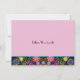 A coordinating notecard to the Showers of Brightness Invitation featuring a border of kaleidoscope colours and fanciful shapes and swirls on a pink backdrop.