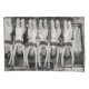 Playful showgirls hang upside down in time's embrace. A vintage twist.