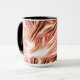Showy salmon to red long wavy traces on white fund mug