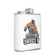 Well made flask, a little better than I had expected. Flask came in clear plastic box which gave it a nice presentation when I took it out of the zazzle packaging. Image is not printed on flask but on sticker. Don't know how this will hold up I haven't used it yet. This would make a Great gift! I plan to purchase more for friends! Cheers. I thought a little brighter than computer. Very crisp, writing wasn't