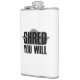 Well made flask, a little better than I had expected. Flask came in clear plastic box which gave it a nice presentation when I took it out of the zazzle packaging. Image is not printed on flask but on sticker. Don't know how this will hold up I haven't used it yet. This would make a Great gift! I plan to purchase more for friends! Cheers. I thought a little brighter than computer. Very crisp, writing wasn't