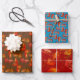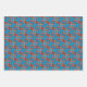 Sheets of wrapping paper with shrimp / prawns design.  Dark brown with medium size shrimp design.  Bright blue with small shrimp pattern. And dark red with large shrimp pattern.  Perfect for wrapping gifts for summer parties, or for shrimpers and fishermen.