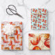 Sheets of wrapping paper with shrimp / prawns design.  Light coloured backgrounds of pale blue, off white, and pink, on three sheets with shrimp patterns in small to large sizes.
