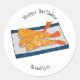 Stickers had a glossy finish which gave them a very professional look. The colour is perfect. And they are the exact size of my lip balm lids. Printing is crisp and clear. Will definitely be ordering again.